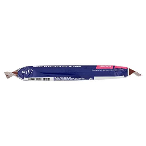 Barretta proteica doppio strato con vitamine. Con proteine del latte e della soia. Barretta sviluppata per soddisfare l’aumentato fabbisogno proteico di chi pratica attività fisica intensa e prevalentemente basata sullo sforzo muscolare. La barretta è una fonte di: • vitamina b6 che contribuisce al normale metabolismo delle proteine, • vitamine pp. e B1 che contribuiscono al normale metabolismo energetico. Le proteine contribuiscono al mantenimento ed alla crescita della massa muscolare. Ingredienti cioccolato fondente (20%) (zucchero, massa di cacao, burro di cacao, emulsionante: lecitina di soia); sciroppo di glucosio; fiocchi di soia (13,4%) (proteine di soia, amido di tapioca, sale); sciroppo di fruttosio-glucosio; proteine del latte; oligofruttosio; proteine di soia; umettante: glicerolo; olio di girasole ad alto contenuto di acido oleico (min. 75% di acido oleico); grasso di palma non idrogenato; proteine di frumento idrolizzate; latte scremato in polvere; aromi; emulsionante: lecitina di soia; mix vitamine (c, pp., e, b6, B1). Prodotto in uno stabilimento che utilizza anche uova, sesamo, frutta a guscio, arachidi. Modalità d’uso si consigliano 1-2 barrette a seconda dell’intensità dell’attività svolta e considerando le altre fonti proteiche apportate dalla dieta. Avvertenze per donne in gravidanza o in allattamento e bambini si raccomanda di sentire il parere del medico. Non superare la dose giornaliera raccomandata. Tenere fuori dalla portata dei bambini al di sotto dei 3 anni di età. Il prodotto va utilizzato nell’ambito di una dieta variata ed equilibrata e uno stile di vita sano.