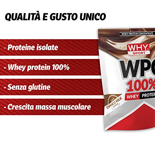 WHY SPORT WPC 100% WHEY – Proteine Whey – Proteine in Polvere per la Massa Muscolare – Senza Glutine – Gusto Choco Milk – 1 Kg