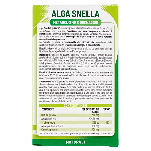 Specification: Equilibra Integratori Alimentari, Alga Snella, Integratore a Base di Estratto di Alga Bruna e Betulla con Centella a Alga Spirulina, Favorisce il Drenaggio dei Liquidi e il Metabolismo, 75 compresse