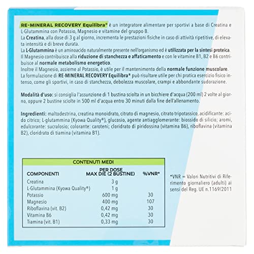 Specification: Equilibra Integratori Alimentari, Re-Mineral Recovery, Integratore per Sportivi, a Base di Creatina e L-Glutammina con Potassio, Magnesio e Vitamine del Gruppo B, 14 Bustine